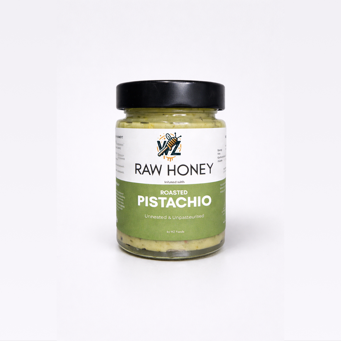 100% Raw, Unpasteurised & Unfiltered Pistachio Infused Honey (220g) A rich and nutty blend of...