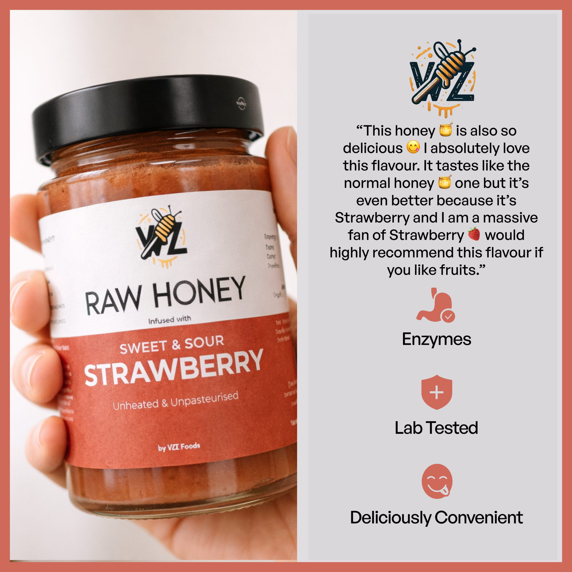 🍓🍯 Enjoy the naturally sweet and tangy taste of our raw, unpasteurised, and unfiltered honey infused with organic freeze-dried strawberries. Free from pesticides and added sugar—all with a delicious fruity twist!